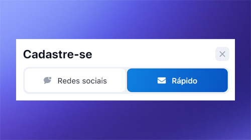 Escolha entre as opções de cadastro disponíveis, seja via e-mail, telefone ou redes sociais.