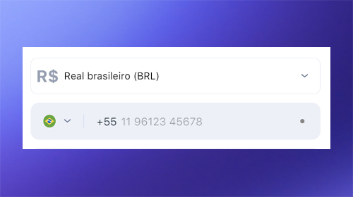 Preencha as informações necessárias, como país de residência e a moeda de sua preferência para transações.